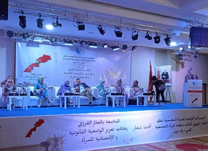 تحت شعار : ” المناصفة بالعالم القروي: رهانات تعزيز الوضعية القانونية و الإقتصادية للمرأة ” تنظم الفيدرالية الوطنية للمرأة التجمعية اللقاء الجهوي الثالث لمنظمة المرأة التجمعية بجهة كلميم وادنون ، و ذلك برحاب فندق “وازيز بألم ” بمدينة كلميم .