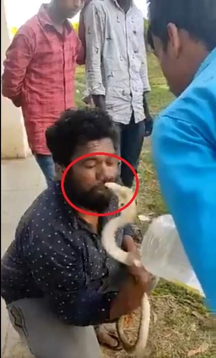 في سابقة لها و بالهند حيث انتشر مقطع ڤيديو يوثق لحظة يظهر فيه رجل يحاول تقبيل كوبرا على رأسه، ولم يمض وقت طويل في الفيديو إلا أن الثعبان أدار رأسه للخلف بشكل مفاجئ وعضه بشفتيه، ليتركه بعيدًا على الفور.