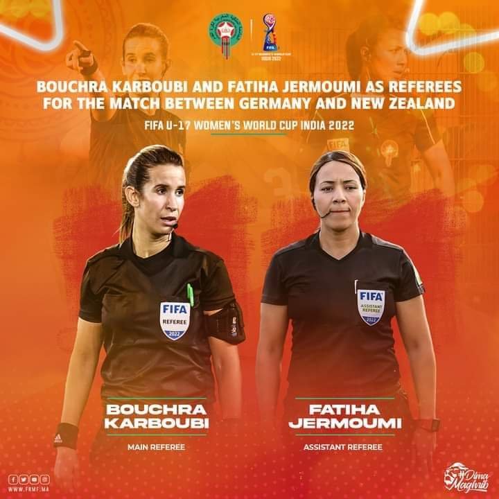 و على سبيل المثال المرأة و الرياضة : بعد حصولهما على نقط ممتازة في مباراتهما الأولى ضمن كأس العالم للسيدات لأقل من 17سنة المقابلة التي جمعت، بين منتخب فرنسا و منتخب كندا المقامة حاليا في الهند، عين الإتحاد الدولي لكرة القدم الحكمة المغربية بشرى كربوبي لقيادة مباراة منتخب ألمانيا ضد منتخب نيوزيلندا بمساعدة الحكمة فاتحة الجرموني كمساعدة حكم.