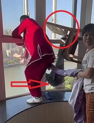 في حادثة شهدتها الصين على إثر تدلي رجل مسن صيني اثار حالة من الذعر والإرباك بين السكان والمارة في حي سكني بالصين، بعدما ظهر متدلياً بكامل جسده رأساً على عقب من نافذة شقته التي تقع في الطوابق العلوية من مبنى سكني، على ارتفاع يصل إلى 150 قدماً، (45.72 متراً).