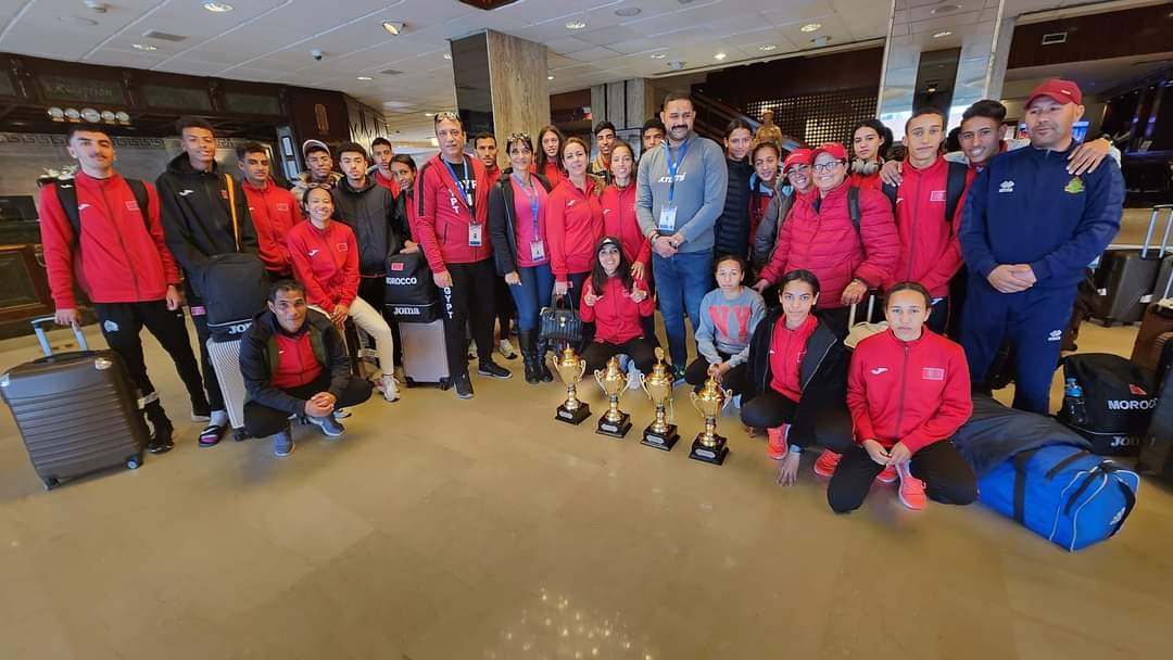 وصلت بعثة المنتخب الوطني المغربي لألعاب القوى الذي شارك في البطولة العربية للعدو الريفي بمصر يوم أمس الثلاثاء في حدود الساعة الحادية عشرة ليلا بمطار محمد الخامس بالبيضاء حاملين لكأس البطولة.