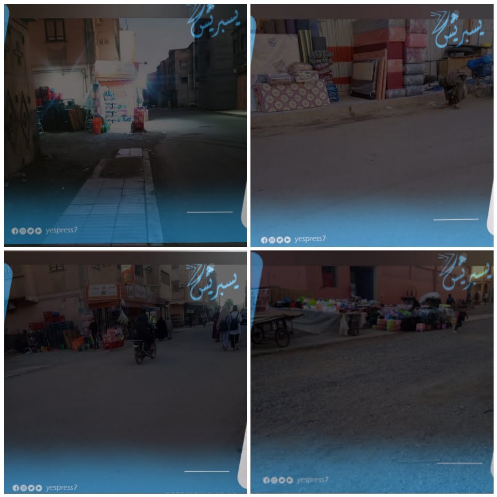 فشارع أولاد بالعيد وطريق تالكجونت … تطاول بعض أصحاب المتاجر على الرصيف المخصص للراجلين في إستغلال فاحش للملك العام دون حسيب و لا رقيب، حيث تم السطو على ممرات هذه الفئة لوضع سلعهم وسط الطريق ..و