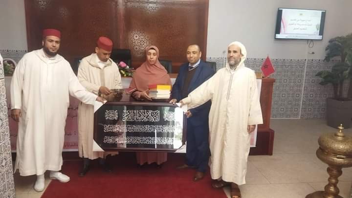 و في الاخير تم توزيع هدايا رمزية وشواهد تقديرية على المحتفى بهن ، تحفيزا لهن وتقديرا لجهودهن ، وفي ختام هذا الحفل رفع الحاضرون أكف الضراعة بالدعاء الصالح لأمير المؤمنين ، جلالة الملك محمد السادس ، وولي عهده ، ولكافة أفراد الأسرة الملكية الشريفة .