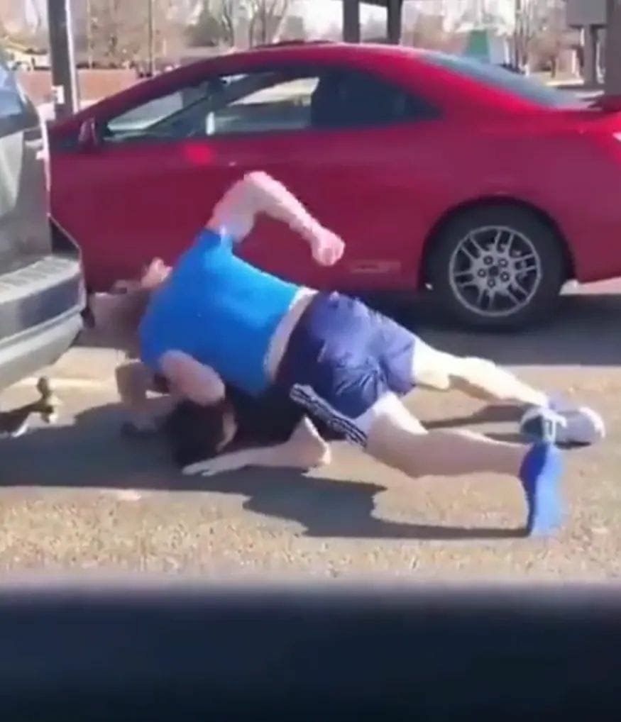 وأظهر المقطع، الشابين وهما يتصافحان بعد انتهاء المشاجرة، ويجمعان أغراضهما التي تبعثرت على الأرض، ثم ذهب كل منهما إلى سيارته ورحل.