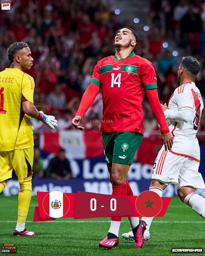 تعادل المنتخب الوطني المغربي أمام نظيره البيروفي بدون أهداف، في المباراة الودية التي جمعتهما مساء اليوم الثلاثاء بملعب ميتروبوليتانو بالعاصمة الإسبانية مدريد.