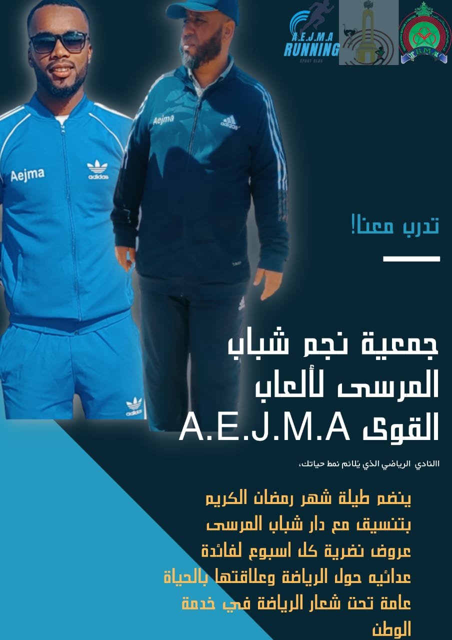 تحت شعار”الرياضة في خدمة الوطن” وبمناسبة شهر رمضان الابرك، تنظم جمعية نجم شباب المرسى لألعاب القوىA.E,J,M,A (عصبة جهة العيون الساقية الحمراء لالعاب القوى) وبتنسيق مع دار الشباب المرسى، دروس نظرية،وتطبيقية لفائدة عدائي الجمعية والتعريف بأهمية الرياضة و علاقتها بحياتنا العامة مبادرة تشكر عليها الجمعية، نتمني لها التوفيق والنجاح