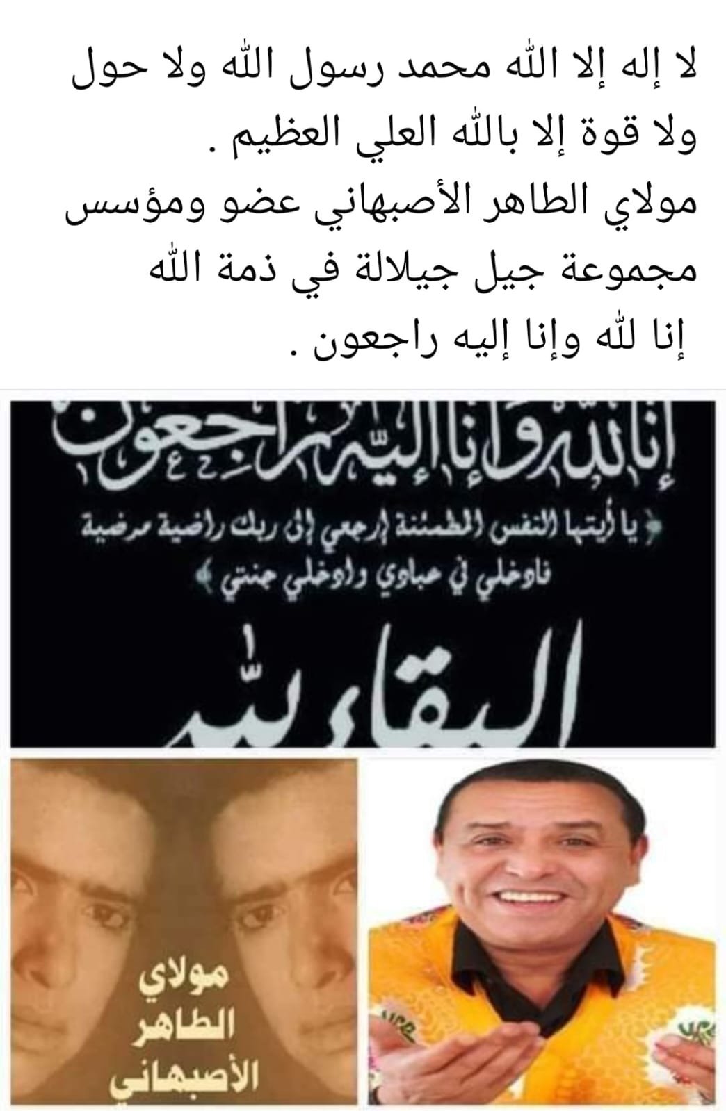 بقلوب مؤمنة بقضاء الله وقدره، انتقل الى رحمة الله صباح هذا اليوم، الأربعاء 3 ماي 2023 الفنان مولاي الطاهر الأصبهاني، عضو فرقة “جيل جيلالة” وأحد مؤسسي المجموعة الموسيقية عن عمر يناهز 75 عاما.