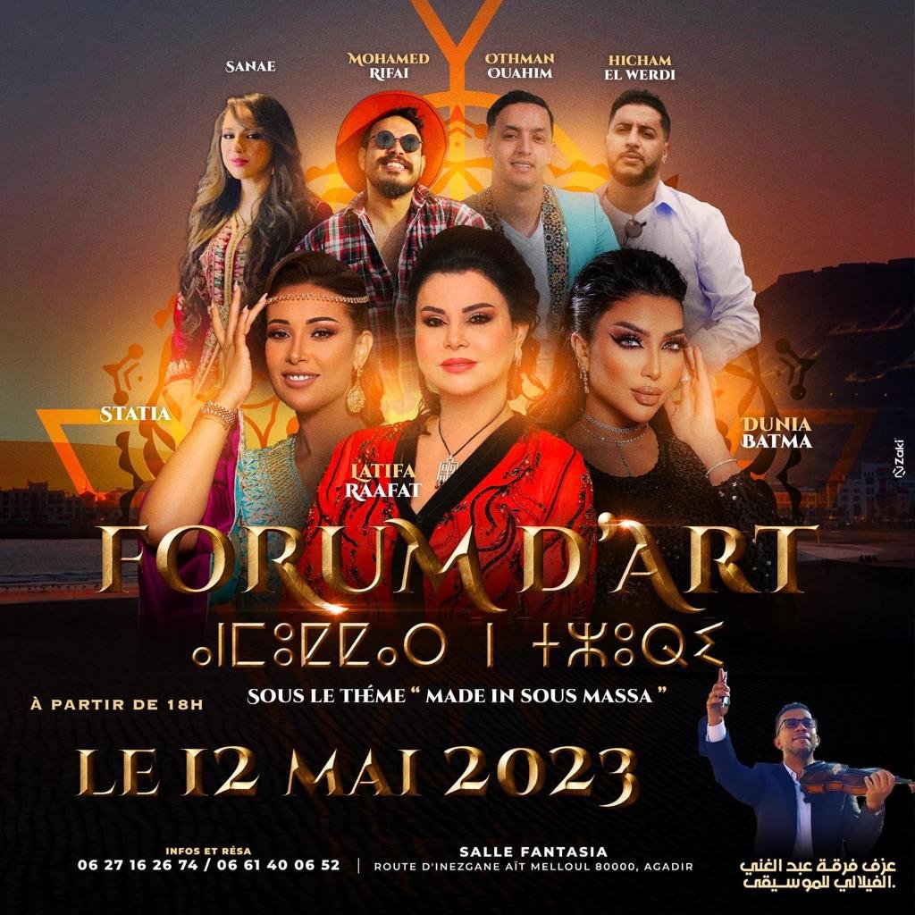 ويتنوع هذا العرض الموسيقي للملتقى تحت شعار ” Made in Souss Hassa ” الذي تقدمه الأمسية الفنية الأمازيغية والموسيقى المغربية إلى موسيقى الشباب مرورا بالإيقاعات الشعبية المغربية الأصيلة، ثم تكريمات ، وبذلك ستصنع الدورة الأولى لـ ” ملتقى الفن ” لحظات من الفرح لساكنة أكادير وزوارها .