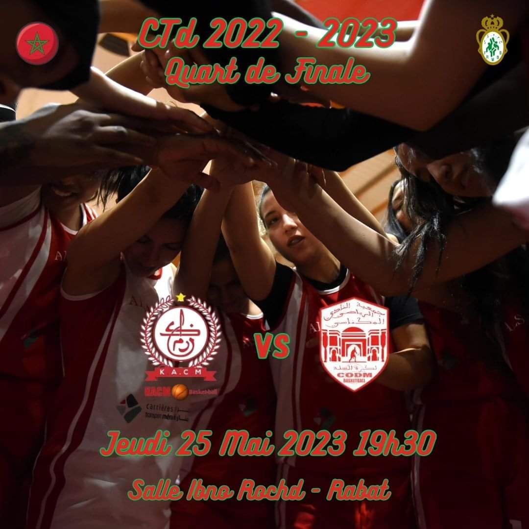 الفريقين على موعد ثاني برسم ربع نهائي كأس العرش يوم الخميس 25 ماي 2023 بقاعة ابن رشد بالرباط على الساعة 19 و30 دقيفة