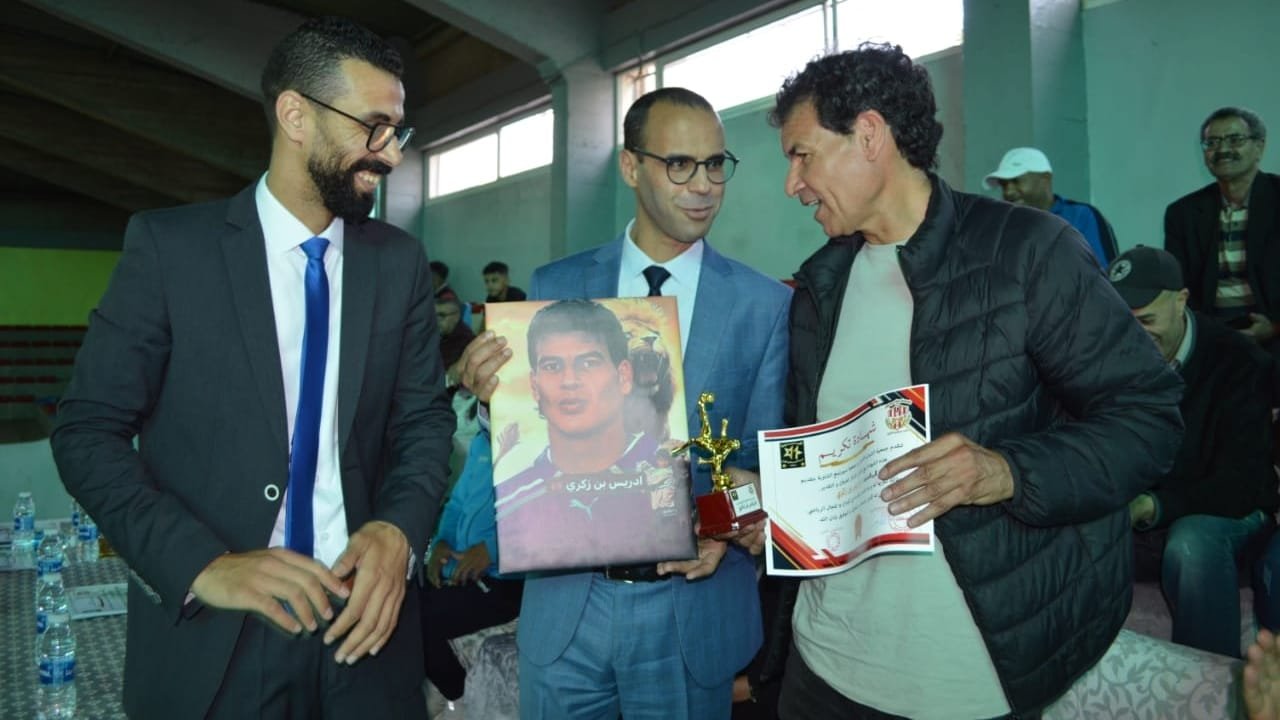 و توج هذا الحفل الرياضي، بتوزيع الميداليات و الشواهد التقديرية على المتوجين و تسليم الكأس للفريق الفائز من طرف المحتفى به الحارس المتميز إدريس بن زكري، الذي حضي هو الآخر بالتكريم من طرف الفعاليات التي أشرفت على تنظيم الدوري الذي كان متميزا بكل المقاييس.