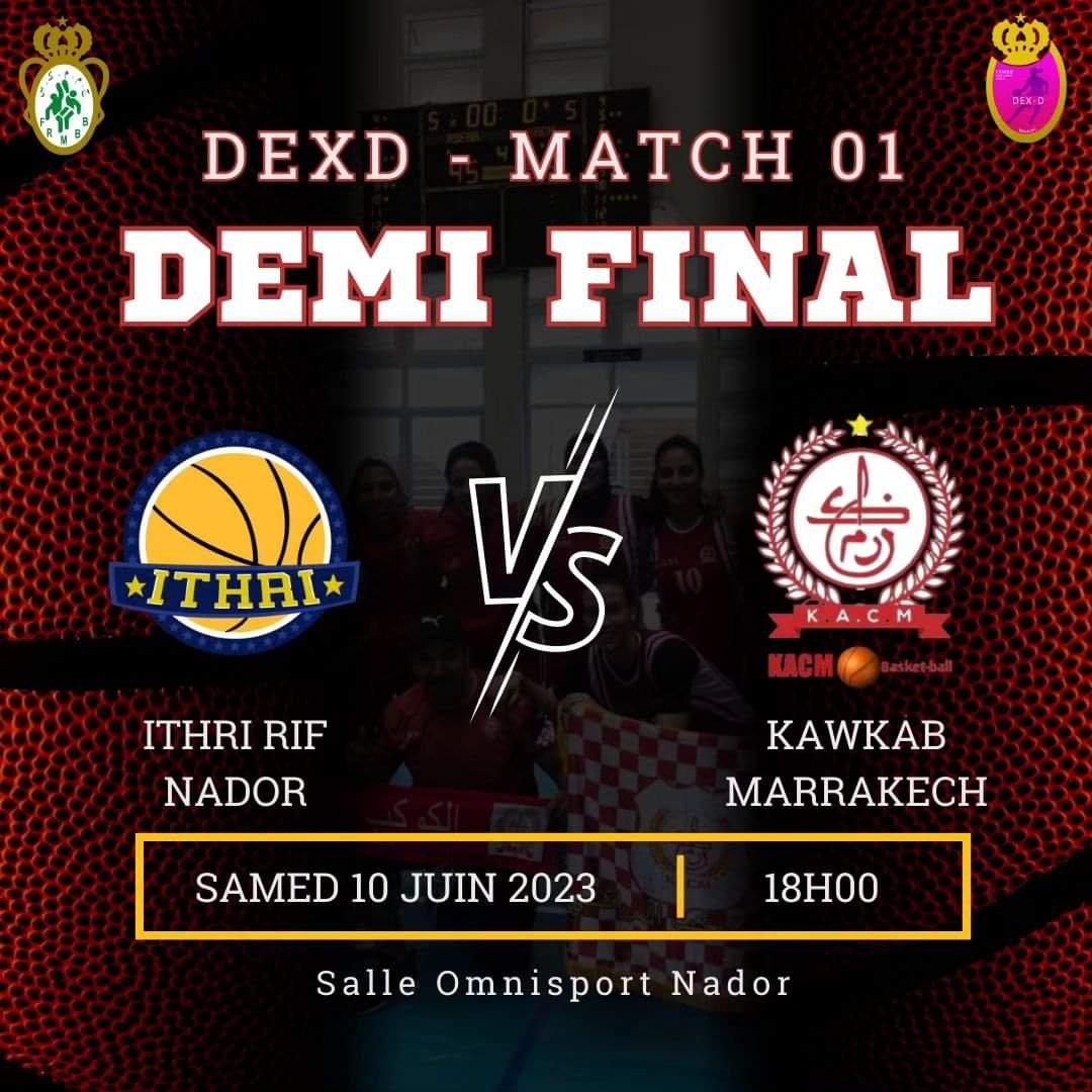 فريق الكوكب المراكشي لكرة السلة اناث في رحلة شاقة الى مدينة الناظور لمواحهة الفريق المحلي اثري يوم السبت 10 يونيو 2023 على الساعة 18 برسم ذهاب نصف نهائي بطولة المغرب لموسم 23/2022