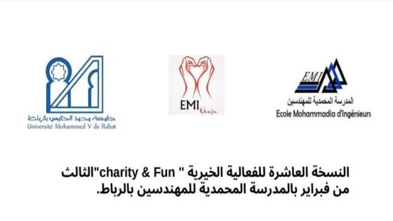 سينظم كل من النادي الجمعوي”khayr-EMI “والفني “Art-EMI ”للمدرسة المحمدية للمهندسين بالرباط النسخة العاشرة من الحفل الخيري “Fun & charity”، وذلك يوم 3 من شهر فبراير داخل مرافق المؤسسة.