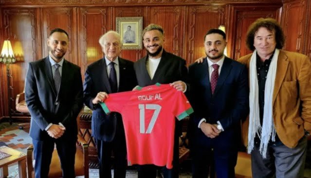 استضاف أندريه أزولاي، مستشار صاحب الجلالة الملك محمد السادس، اليوم لاعب المنتخب المغربي سفيان بوفال بمقر الديوان الملكي بالرباط.