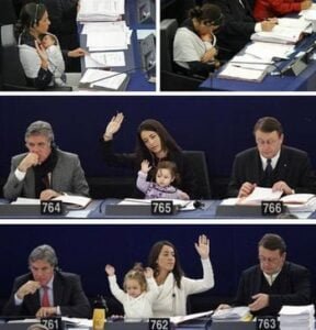 فقد أظهر مقطع متداول على منصات التواصل الإجتماعي المستشارة البرلمانية من الغرفة الثانية الرفيقة فاطمة أزوݣاغ عن المجموعة النيابية للكونفدرالية الديمقراطية للشغل وهي تحمل رضيعها النائم، حيث استمرت كلمة الأم دقيقتين و40 ثانية، وظل الرضيع نائما(هداه الله) لم يوقظه حتى تصفيق الحضور حين انتهت كلمتها التي ألقتها على هامش الدورة الخاصة بوضع المرأة:”إن المغرب قام بخطوات عدة في مجال تعزيز حقوق المرأة،فلمملكة في إطار الدستور والاتفاقيات الدولية التي صادقت عليها، أكدت على أن الرجل والمرأة يتمتعان على قدم المساواة بالحقوق والحريات عامة.