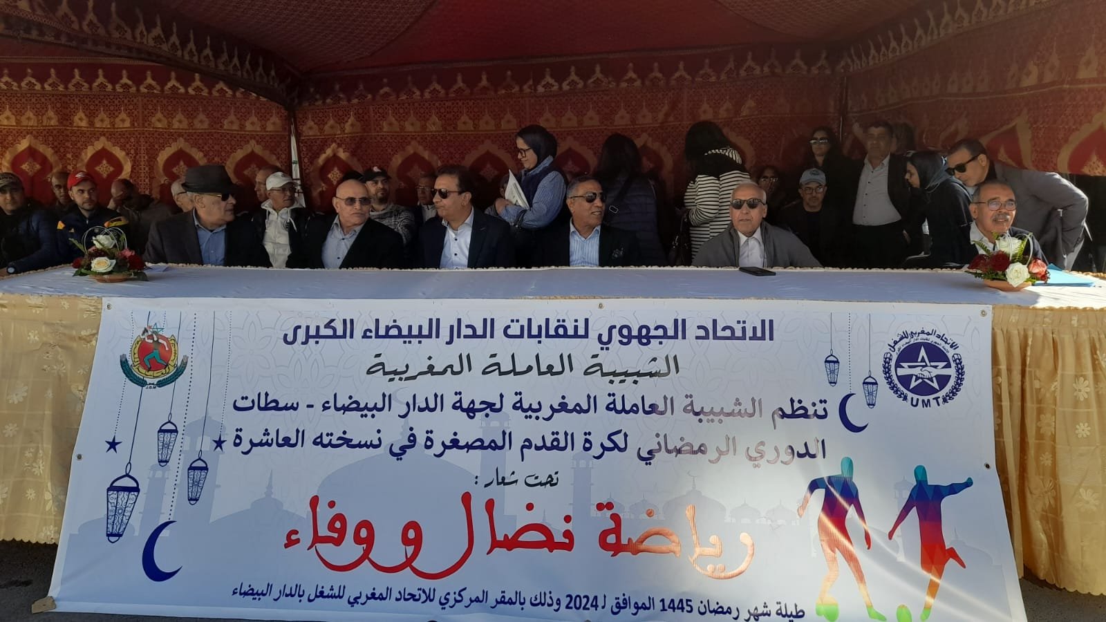 إحتضن المقر المركزي للإتحاد المغربي للشغل بالدارالبيضاء يوم السبت 16 مارس 2024 ابتداء من الساعة الرابعة عصرا، النسخة العاشرة من الدوري الرمضاني لكرة القدم المصغرة لسنة 2024 والتي ستستمر طيلة شهر رمضان تحت شعار: