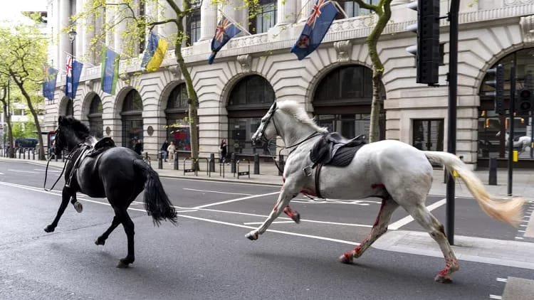 وقد تسبب جموح عدة خيول عسكرية خلال مناورات روتينية في العاصمة البريطانية لندن، في إصابة أربعة أشخاص على الأقل يوم الأربعاء.