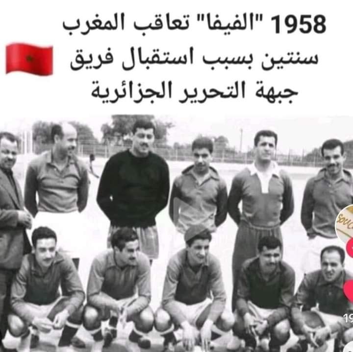 خلال عام 1958، عاقب الاتحاد الدولي لكرة القدم “الفيفا” المنتخب المغربي، بسبب لعبه لمباراة تضامنية ضد فريق جبهة التحرير الوطني الجزائري لكرة القدم، الذي لم يكن معترفا به آنذاك من قبل قوانين “الفيفا”.