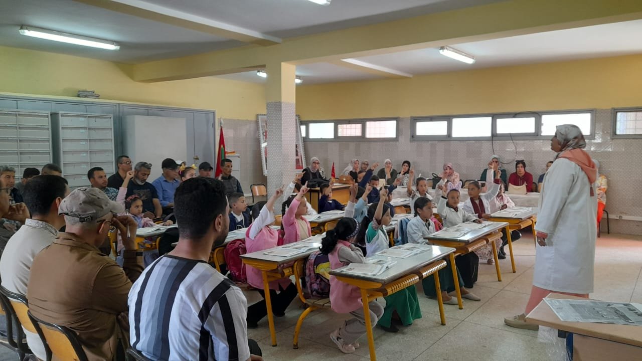 استهل اللقاء بدروس نموذجية من إلقاء الأستاذتين فتيحة كباب وهاجر الحقيوي في التعبير الشفوي بالمستوى الثاني ابتدائي موضوعه” les fêtes” ،ودرس آخر بالمستوى الثالث موضوعه” les métiers” تلته مناقشة الدروس للوقوف على مختلف الطرق البيداغوجية والديداكتيكية المعتمدة من طرف الأستاذتين في تقديمهن للدروس.