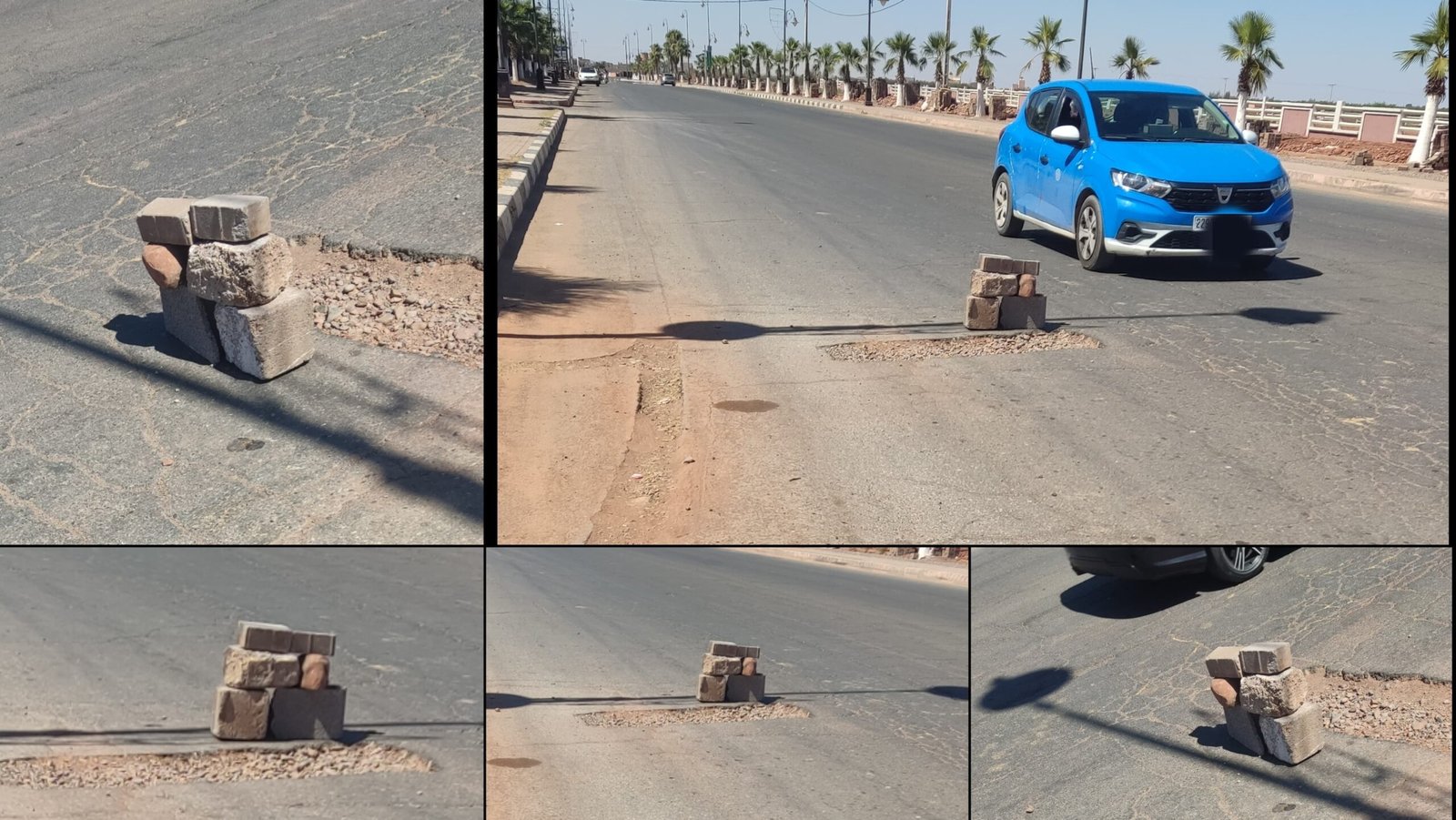 في مشهد يعكس الإهمال الذي تعرفه بعض شوارع مدينة العطاوية، تشهد الطريق الرابط بين العطاوية وقلعة السراغنة، داخل المجال الحضري قرب مسجد الامل 2، وضعية خطيرة نتيجة حفرة وسط الشارع وضعت فوقها بعض الأحجار بشكل عشوائي، في محاولة بدائية لتنبيه مستعملي الطريق.