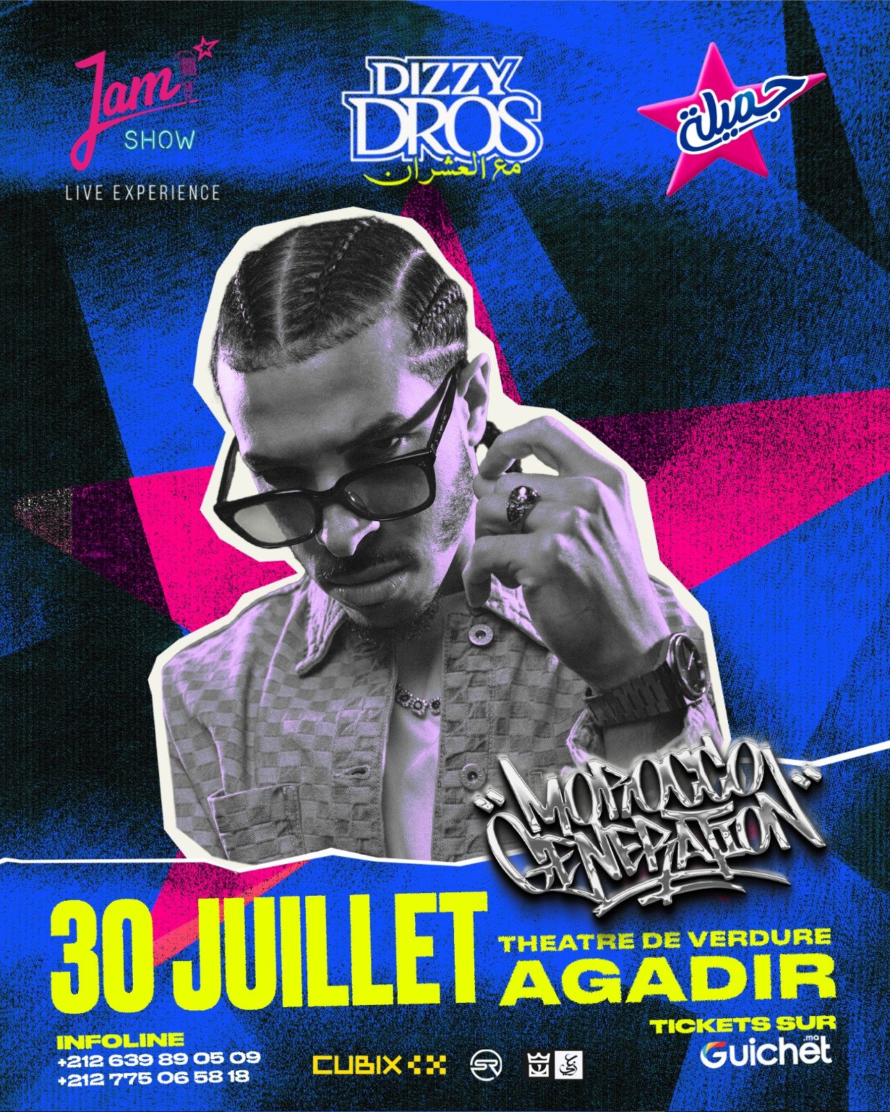لكن “ديزي دروس” لن يكون وحده في هذه الليلة، إذ سيرافقه على خشبة المسرح أفراد مجموعة “العشران”، وهم 11 موهبة شابة تنتمي إلى برنامج Jamshow، يمثلون طليعة الجيل الجديد من فناني الراب في المغرب، حضورهم إلى جانب نجم كبير في هذا الحدث يعكس روح التعاون والدعم التي تتبناها مبادرة “Morocco Generations”، ويجسد رؤية فنية تؤمن بتمرير المشعل وتشجيع الأصوات الجديدة على البروز والتألق .