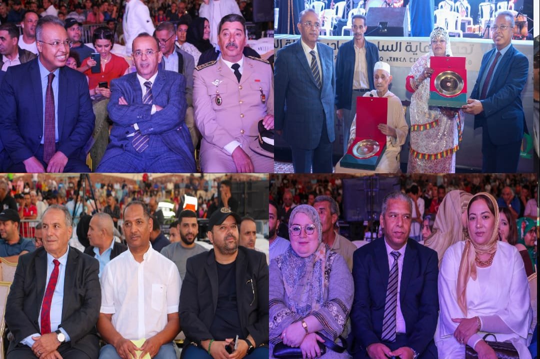 وقد عرفت السهرة الإفتتاحية حضور شخصيات وازنة، من بينها السيد “إسماعيل أبو الحقوق” عامل عمالة إنزكان أيت ملول، والسيد “إبراهيم الدهموش” رئيس جماعة الدشيرة الجهادية، إلى جانب السيد “رشيد المعيفي” رئيس مجلس جماعة إنزكان وبرلمانيين، ورؤساء جماعات ترابية مجاورة، وممثلي القطاعات الوزارية، وأطر وزارة الثقافة، وشخصيات إعلامية وجمعوية وازنة .