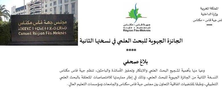 مجلس جهة فاس-مكناس يطلق النسخة الثانية من الجائزة الجهوية للبحث العلمي دعماً للتميز والابتكار