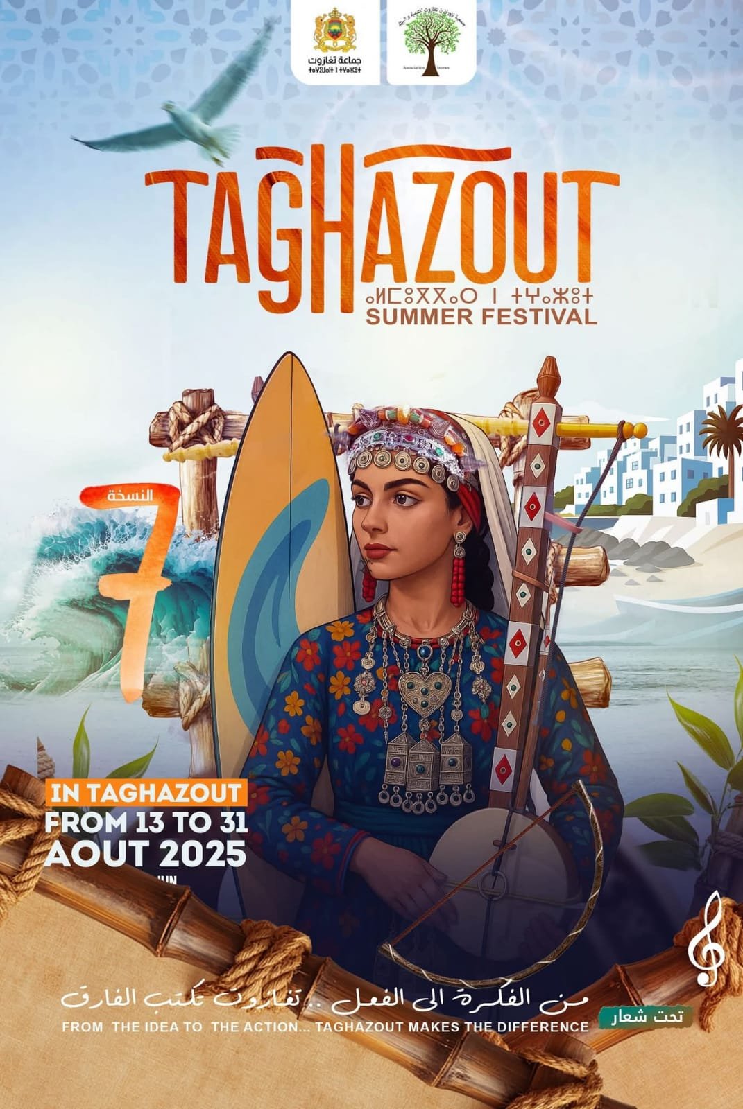 على ضفاف الأطلسي، حيث ترقص أمواج المحيط على نغمة الحلم، تستعد قرية تغازوت الشاطئية، جوهرة الساحل جنوب المغرب، لاحتضان إحدى أبرز محطات صيف 2025: الدورة السابعة لمهرجان تغازوت الصيفي، الذي تنظمه جمعية إزوران ن تغازوت للتنمية والبيئة، بشراكة مع المجلس الجماعي لتغازوت، وبدعم من مؤسسات عمومية وخاصة، وذلك في الفترة الممتدة من 13 إلى 31 غشت الجاري .