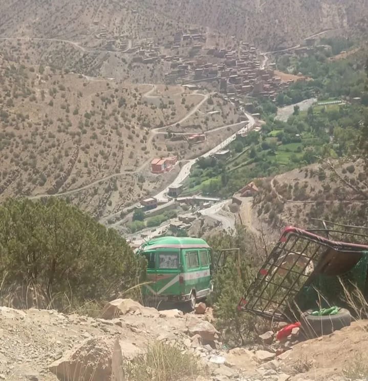 حادثة اخرى تنضاف الى حوادث النقل المزدوج بالمناطق الجبلية. عرف يومه الاربعاء 27 عشت 2025 إنقلاب حافلة للنقل المزدوج بزاوية احنصال إقليم ازيلال بعد انحرافها عن الطريق وسقطت الى اسفل الجبل على مثنها 25 راكباً وأصيب 20 منهم في حين غادر 17 شخصا المستشفى بعد تلقيهم الاسعافات الضرورية ولازال 3 منهم حالتهم حرجة بالمستشفى الاقليمي بازيلال.