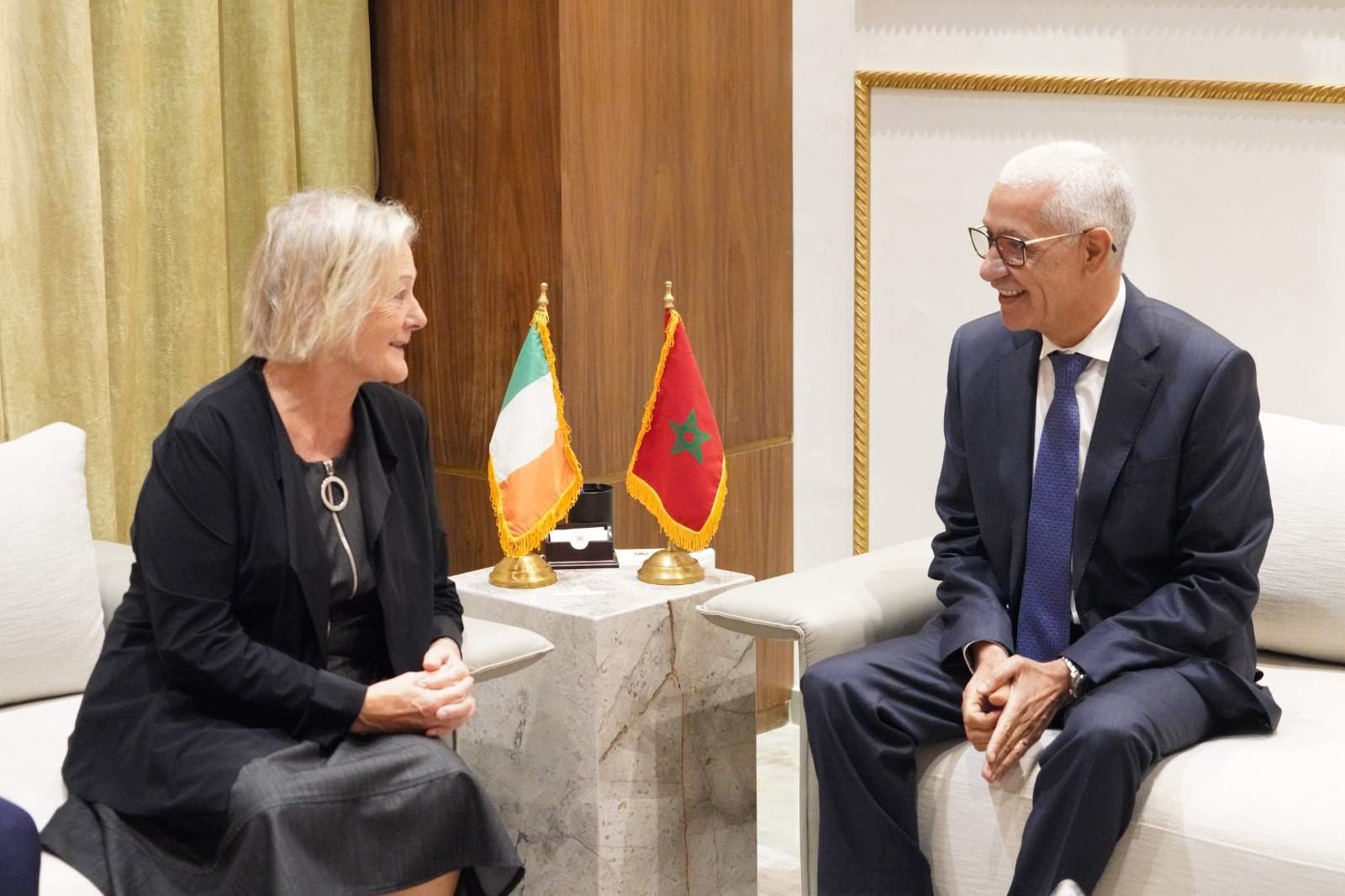 استقبل رئيس مجلس النواب السيد راشيد الطالبي العلمي، يوم الثلاثاء 23 شتنبر 2025 بمقر المجلس في الرباط، وفدا عن جمعية قدماء البرلمانيين الإيرلنديين برئاسة السيدة Mary Flaherty، حيث يقوم الوفد بزيارة عمل للمملكة المغربية، من 22 إلى 29 من الشهر الجاري، تتخللها لقاءات وزيارات ميدانية للتعرف على الأوراش الكبرى التي انخرطت فيها المملكة المغربية تحت القيادة الرشيدة لصاحب الجلالة الملك محمد السادس نصره الله.