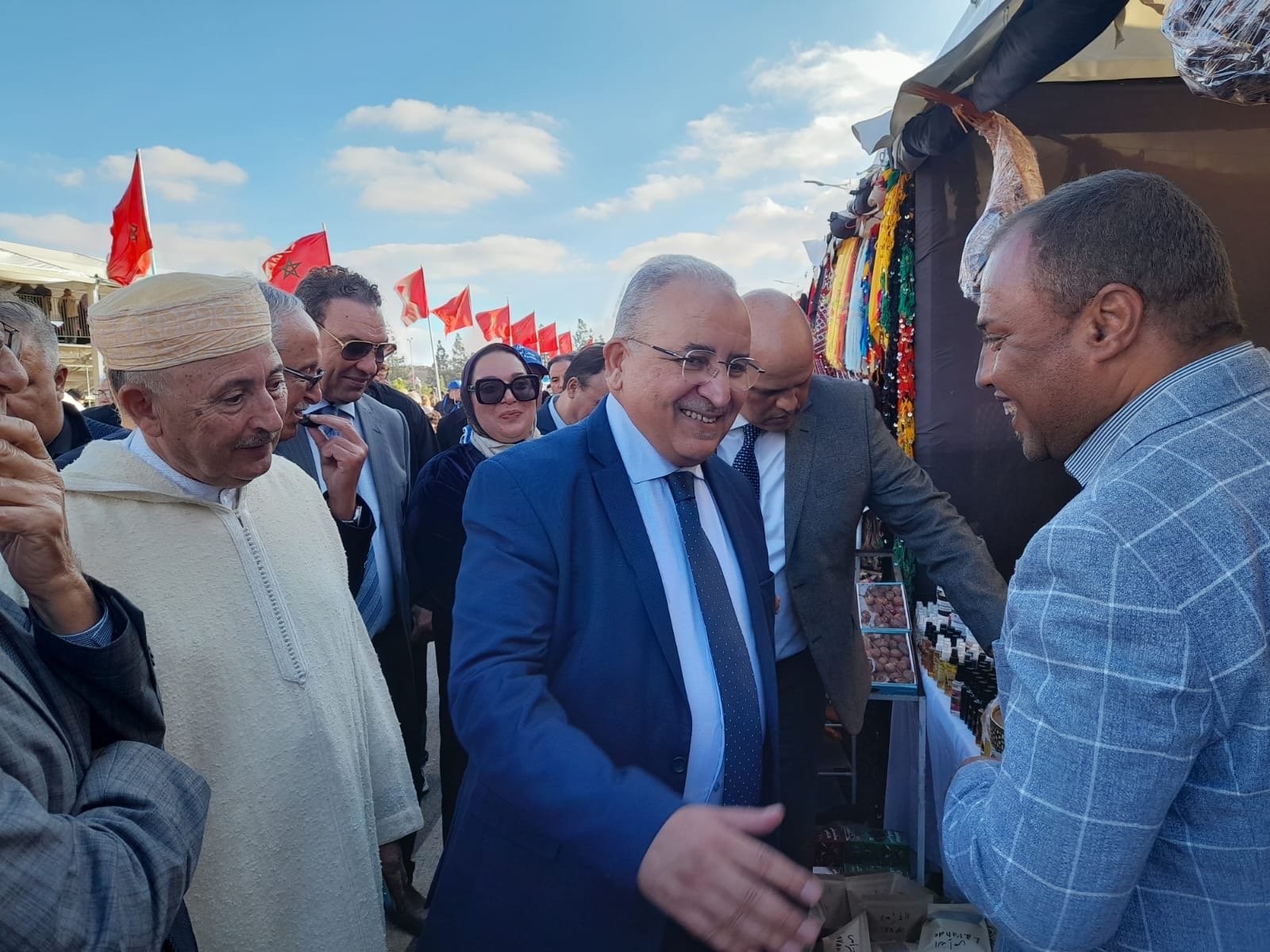 وبالمناسبة، أشرف عامل إقليم الخميسات عبد اللطيف النحلي، مرفوقاً بالكاتب العام لوزارة الفلاحة ، ورئيسة المجلس الإقليمي ،ورئيس جماعة أولماس محمد شرورو، على زيارة لمعرض المنتجات المحلية الفلاحية والصناعة التقليدية.، على مختلف أروقة المعرض التي تعرض منتوجات محلية مميزة في مجالي الفلاحة والصناعة التقليدية، بهدف تثمين مجهود الفلاحين والحرفيين والتعاونيات والجمعيات.