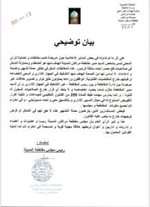 وما تضمنت رسالتهم من مغالطات و افتراء، وإدعاءات يدخل في نطاق حملة تشهيرية واضحة، تهدف الى النيل من كفاءة أعضاء المجلس الطاقم الإداري بالمقاطعة، وخلق جو من التوثر بين ادارة المقاطعة ورئيسها، في الوقت الذي يلتزم فيه كل طرف باحترام اختصاصاته وفقا للقوانين المنظمة للجماعات المحلية، وكل القرارات تتخذ طبقا للقانون التنظيمي 259، وتنفيذا لقرارات التفويض الممنوحة لرؤساء المقاطعات، في مجال التسيير الإداري.