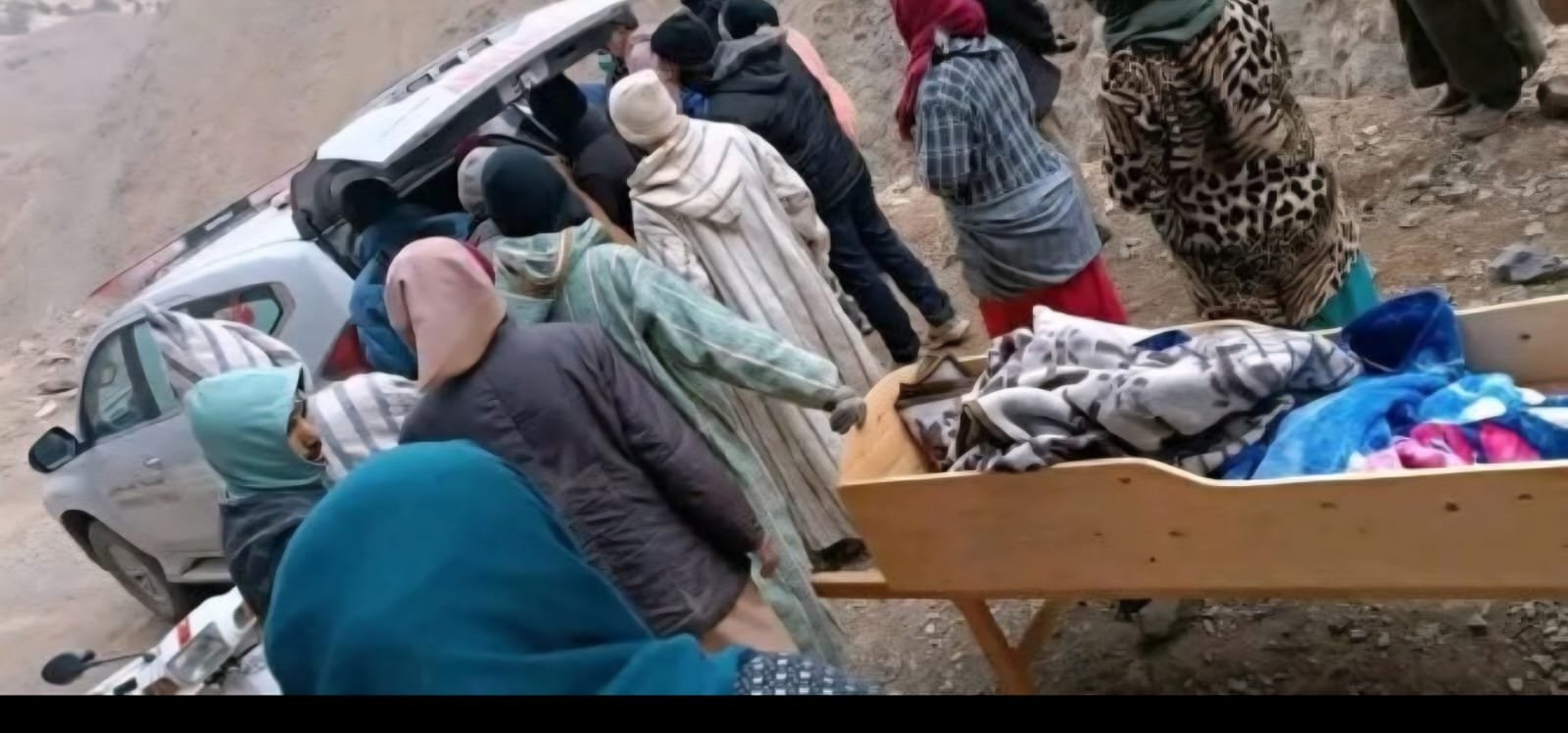 بدوار أفرا بإقليم الحوز مأساة إنسانية حادة، حيث اضطر السكان إلى نقل مريض على نعش الموتى بعد أن قطعت الثلوج الطرق وأدى ذلك إلى انقطاع الكهرباء والمواصلات، مما حال دون وصول سيارات الإسعاف أو أي مساعدة طبية .