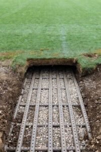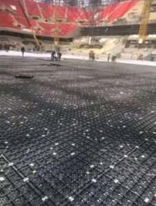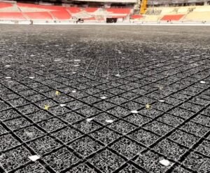 السر التقني: نظام تصريف مياه متطورالنجاح يعود إلى تصميم هندسي معقد تحت العشب:شبكات تصريف تلقائية: طبقات رملية مع صرف أفقي يمتص 60 لترًا لكل متر مربع في الساعة، مدعومة بمضخات تعمل بالجاذبية والكهرباء.عشب هجين: مزيج من العشب الطبيعي والألياف الصناعية (Hybrid Grass) من شركات مثل Desso أو SIS Pitches، مقاوم للرطوبة والضغط العالي.صيانة يومية: فرق متخصصة تقوم بتهوية وتسميد دوري، مع مراقبة مستمرة لضمان الكمال.