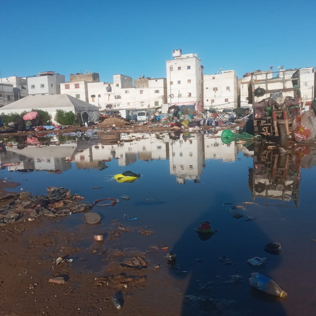 التساقطات المطرية تحول أرضية سوق لمكانسة إلى برك مائية ومستنقعات آسنة…!!