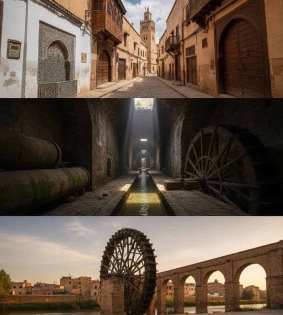 بينما كان العالم يتخبط، كانت فاس ترفع الماء لأعالي الجبال بـ نواعير خشبية ضخمة (مثل ناعورة باب الماكينة).