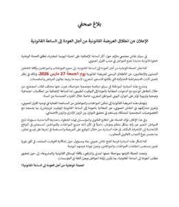 وتجدد الحملة التزامها بمواصلة عملها المدني والترافعي، بكافة الوسائل القانونية والمشروعة، إلى حين تحقيق مطلب العودة إلى الساعة القانونية، بما يكرس إرادة المواطن ويعزز الثقة في المؤسسات.