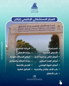 وقد جرى تحويل عدد مهم من المصالح الطبية إلى المركز الاستشفائي الإقليمي بإنزكان، الذي أصبح يشكل قطبا أساسيا لاستقبال الحالات المستعجلة، إلى جانب احتضانه لتخصصات طبية حيوية تشمل أمراض الكلي وتصفية الدم، أمراض الغدد والسكري، أمراض الجهاز الهضمي، طب الأطفال، وطب الأنف والأذن والحنجرة .