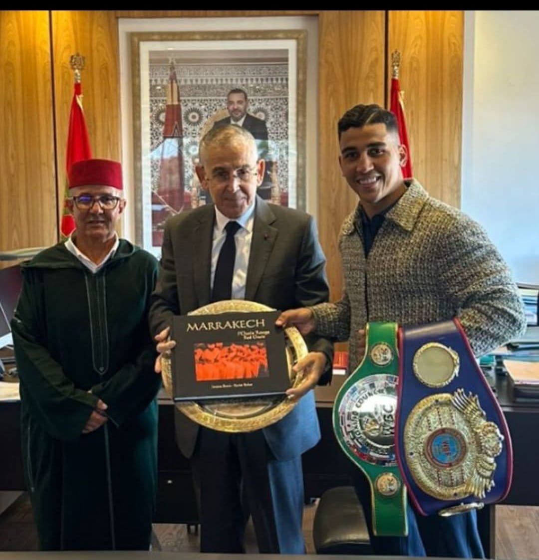 ويأتي هذا الإستقبال تكريما للمسار المتميز الذي بصم عليه البطل المراكشي في رياضة الملاكمة الإحترافية ،