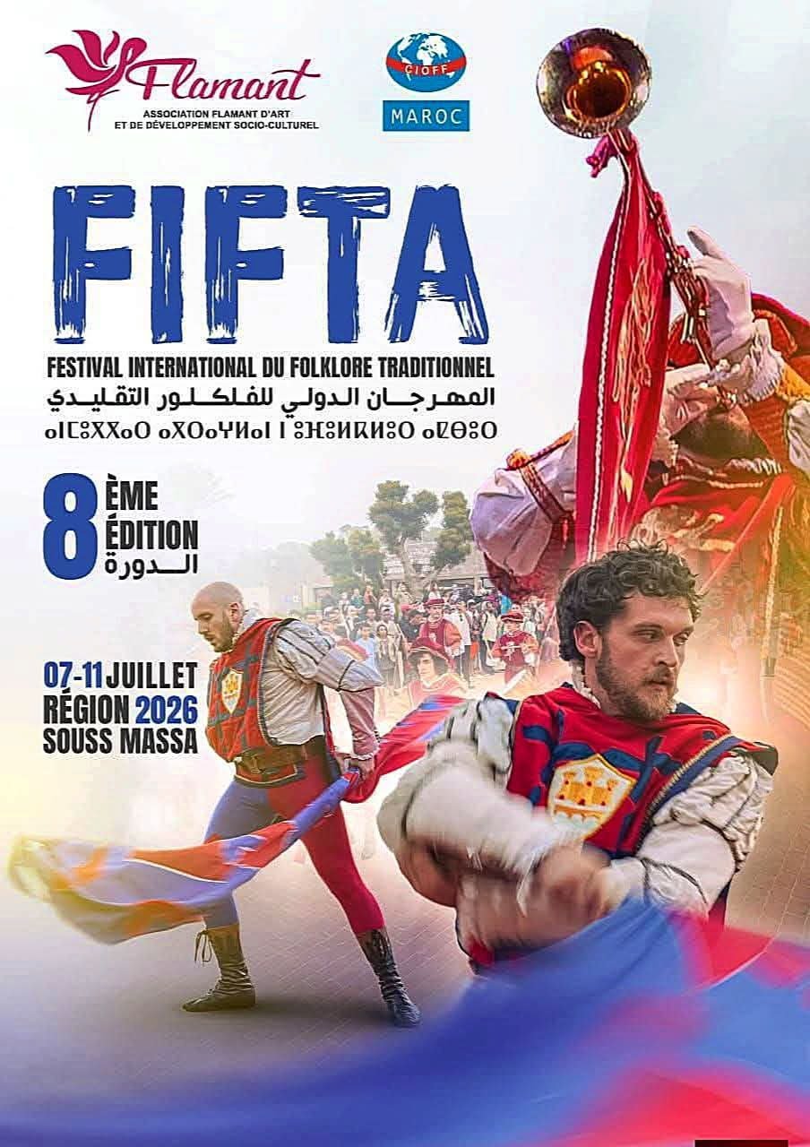 تتهيأ مدينة أكادير لعيش واحدة من أبرز المحطات الثقافية والفنية الدولية، من خلال احتضانها الدورة الثامنة من المهرجان الدولي للفلكلور التقليدي بأكادير (FIFTA)، الذي تنظمه جمعية فلامون للفن والتنمية السوسيوثقافية، بشراكة مع المجلس الدولي لمنظمات مهرجانات الفلكلور والفنون التقليدية (CIOFF المغرب)، وذلك خلال الفترة الممتدة من 07 إلى 11 يوليوز 2026، بجهة سوس ماسة، مهد التراث الأصيل وملتقى الثقافات .