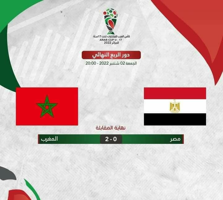 منتخب المغرب لأقل من 17 سنة يخرج المنتخب المصري والمرشح الأول للظفر بالبطولة بعد أن سجل 17 هدفا في الدور الأول ، فبالرغم من ارضية الميدان المهترئة و اللعب أمام جماهير تشجع المنتخب المصري و قد وضعت العلمين الجزائري و المصري جنبا إلى جنب ، إلا أن زملاء نجم اللقاء عبد الحميد معالي كان لهم رأي آخر فاقصوا المنتخب المصري وتأهلوا لملاقاة المنتخب اليمني في دور نصف النهائي.