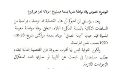 إعلان عن وفاة مواطنة مغربية بمدينة هيدليبرغ ولاية بادن فورتميرغ .