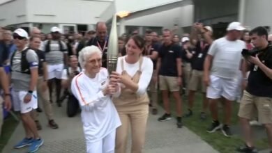 معمرة فرنسية تحمل الشعلة الأولمبية لباريس 2024