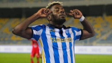 الهداف الغابوني أكسل مايي باللون البرتقالي البركاني