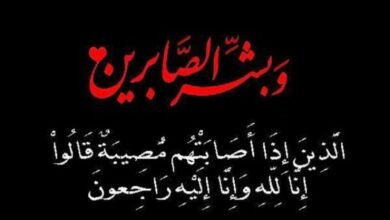 ((يأيتها النفس المطمئنة إرجعي إلى ربك راضية مرضية فأدخلي في عبادي وأدخلي جنتي)) صدق الله العظيم. ببالغ الأسى والحزن،…