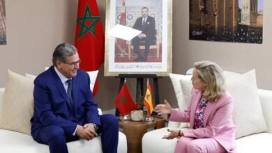 محمد نشوان/ مكتب مراكش عقد اليوم في مراكش السيد عزيز أخنوش رئيس الحكومة، مباحثات مع النائبة الأولى لرئيس الحكومة الإسبانية…