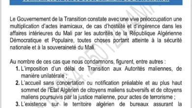 محمد حتيمي مكتب سلا نص بيان الحكومة المالية: ” وسيكون للحكومة الانتقالية فضول لمعرفة كيف سيكون شعور السلطات الجزائرية إذا…
