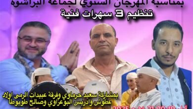 محمد العزاوي/الرباط سلا القنيطرة ستشهد جماعة البراشوة التابعة لإقليم الخميسات فعاليات النسخة الثالثة لمهرجان التبوريدة، أيام 19 و20 و21 غشت…